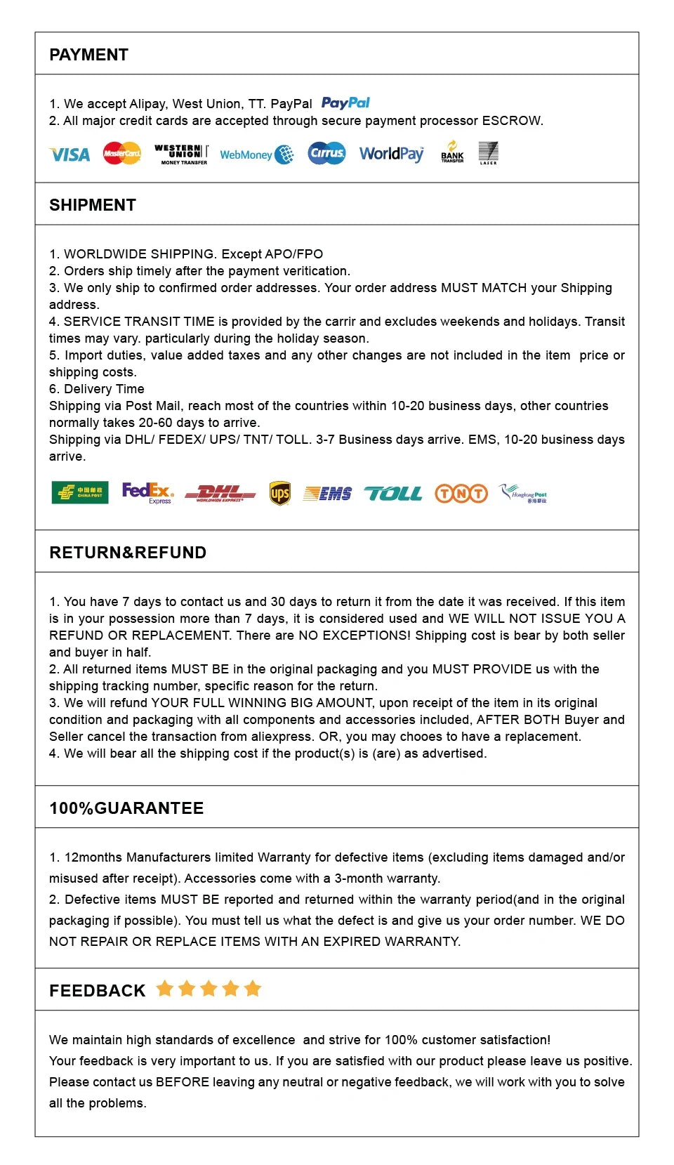 - We want you to be 100% satisfied with your purchase. Items can be returned or exchanged within 30 days of delivery.