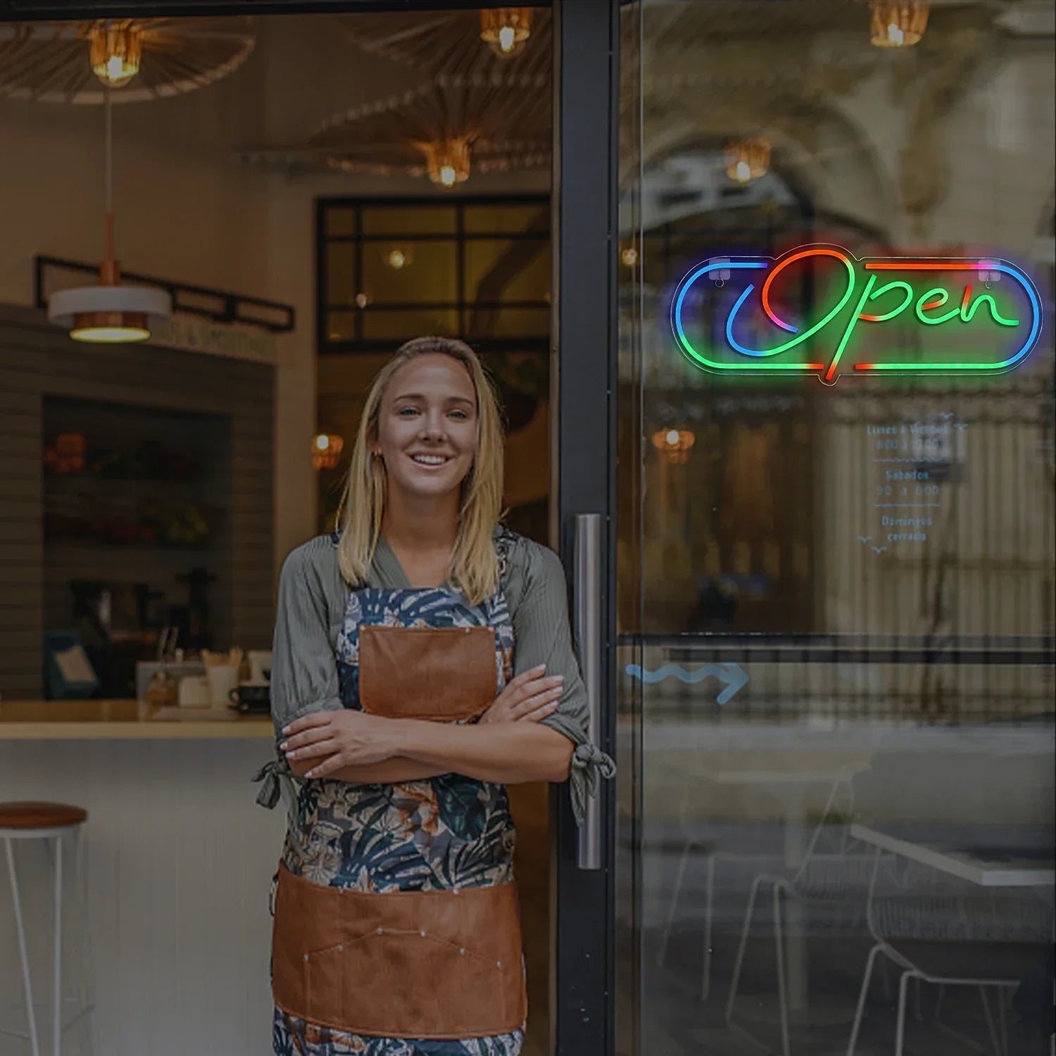 Make your business stand out with our vibrant Colorful Open Neon Sign, designed for commercial and professional settings. This eye-catching LED neon sign is perfect for shops, offices, bars, restaurants, and events, adding a bright and attractive glow to any indoor space.